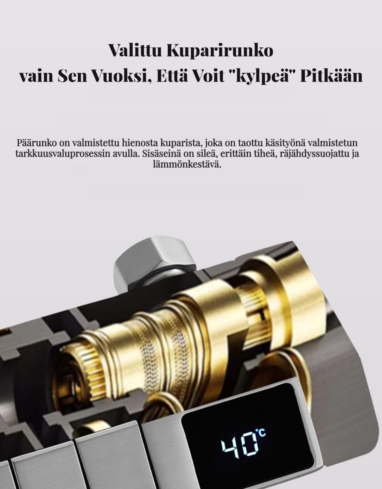 Kestävä: Valmistettu korkealaatuisista messingistä ja keraamisista komponenteista pitkäaikaiseen kestävyyteen ja korroosionkestävyyteen.