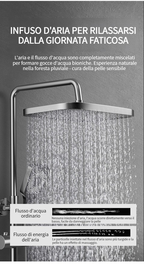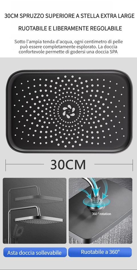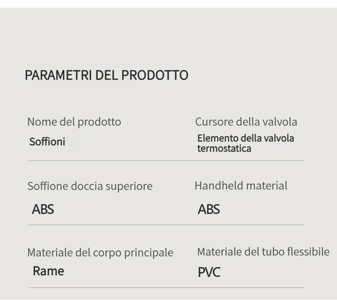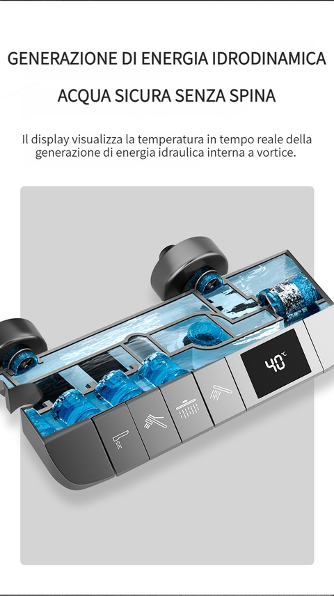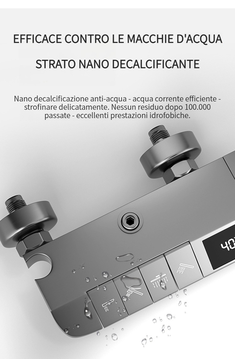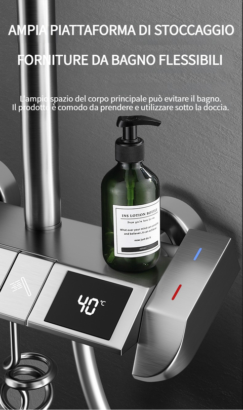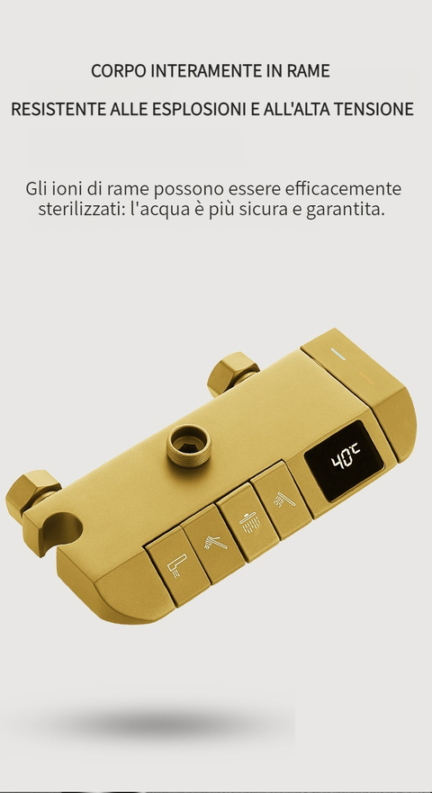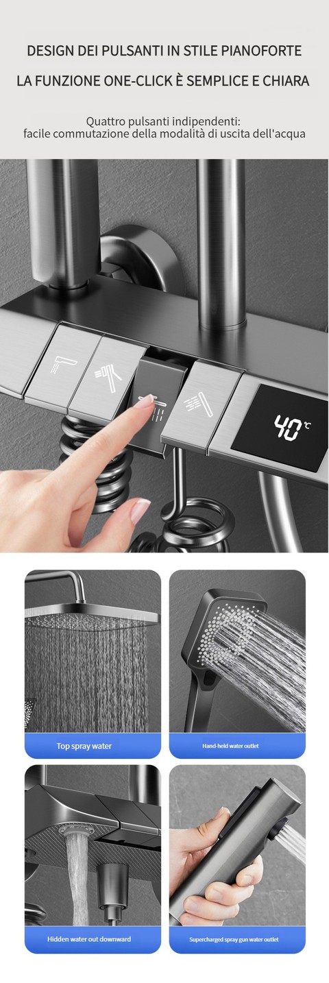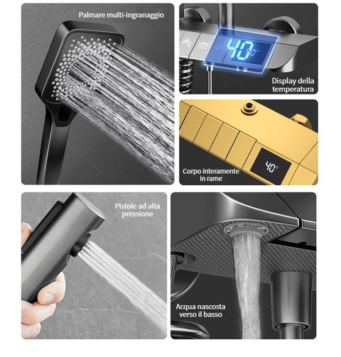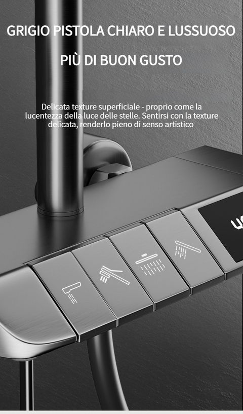 Set doccia con termostato digitale intelligente e tasti del pianoforte.